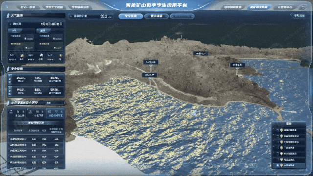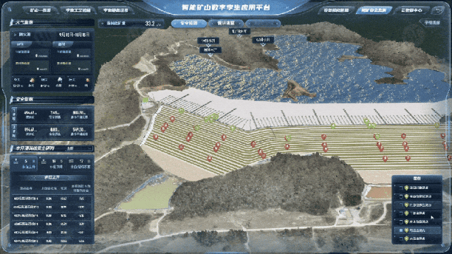 在地表模型中展示边坡雷达监测点位及其实时数据,实时更新边坡位移情况,并通过颜色标识预警状态,让管理者一目了然掌握边坡稳定性,及时发现风险并快速处置。