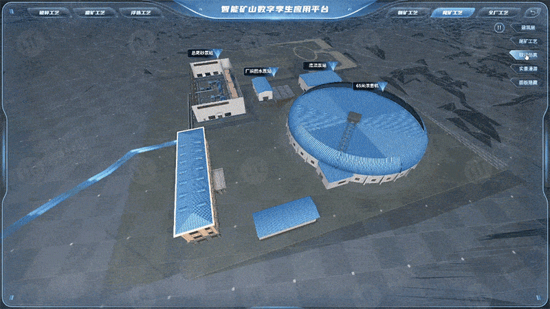 东方国信携手图扑软件,凭借东方国信的矿山业务赋能与管控能力,打通数据壁垒、破解传统矿山发展痛点,实现采矿、选矿、尾矿全环节精细化管理,助力智能矿山打造国内智能矿山示范标杆。借助图扑自研 HT 三维可视化技术,可精准复刻矿山破碎、磨矿、浮选、精矿、尾矿五大核心工艺环节,实现生产全流程的数字化全景呈现与虚实协同联动,推动矿山生产从传统管控向智能化、透明化升级。