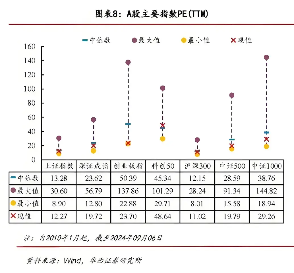 从市场估值水平来看,根据华西证券的数据,当前上证指数、沪深300、中证500和创业板指的估值都在历史最低值附近,经过三年的调整,A股当前的估值已经处于历史上最便宜的区间内。