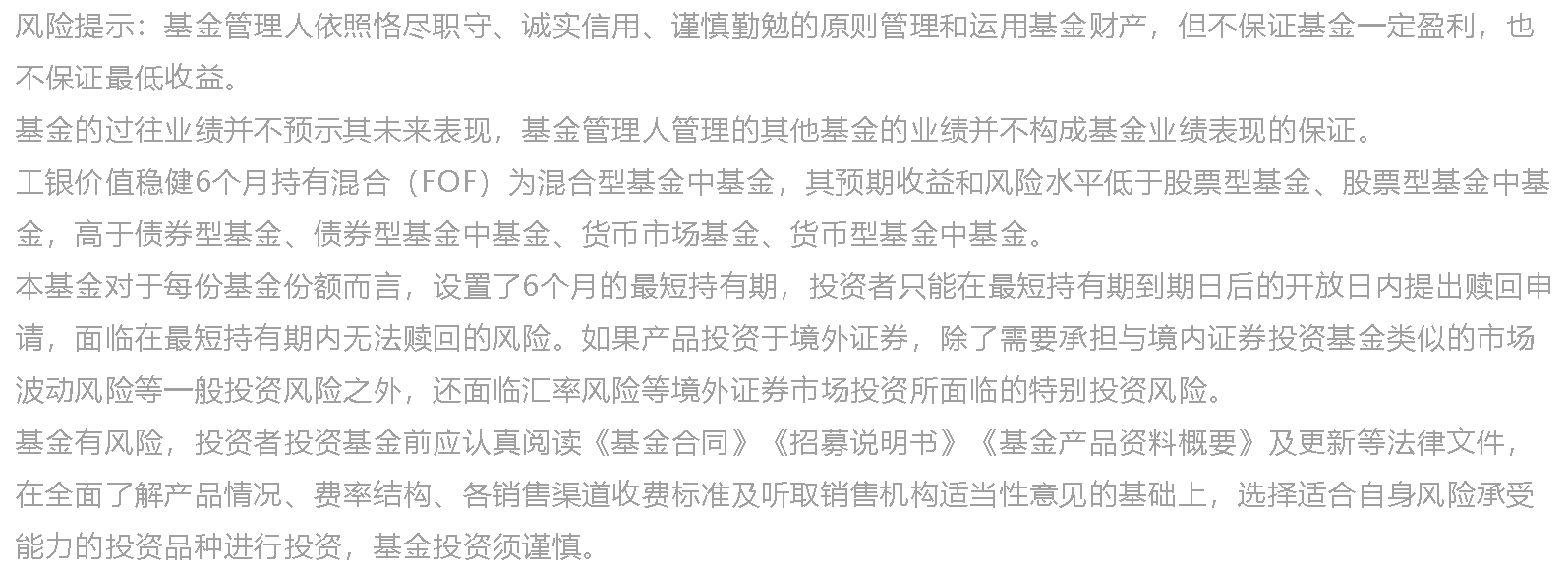 在底层基金的筛选上,工银价值稳健6个月持有混合(FOF)的目标是:持续寻找能赚取超额收益的品种。