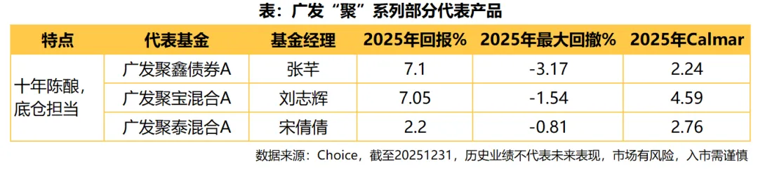 1️⃣ 广发“聚”系列:十年陈酿,底仓担当