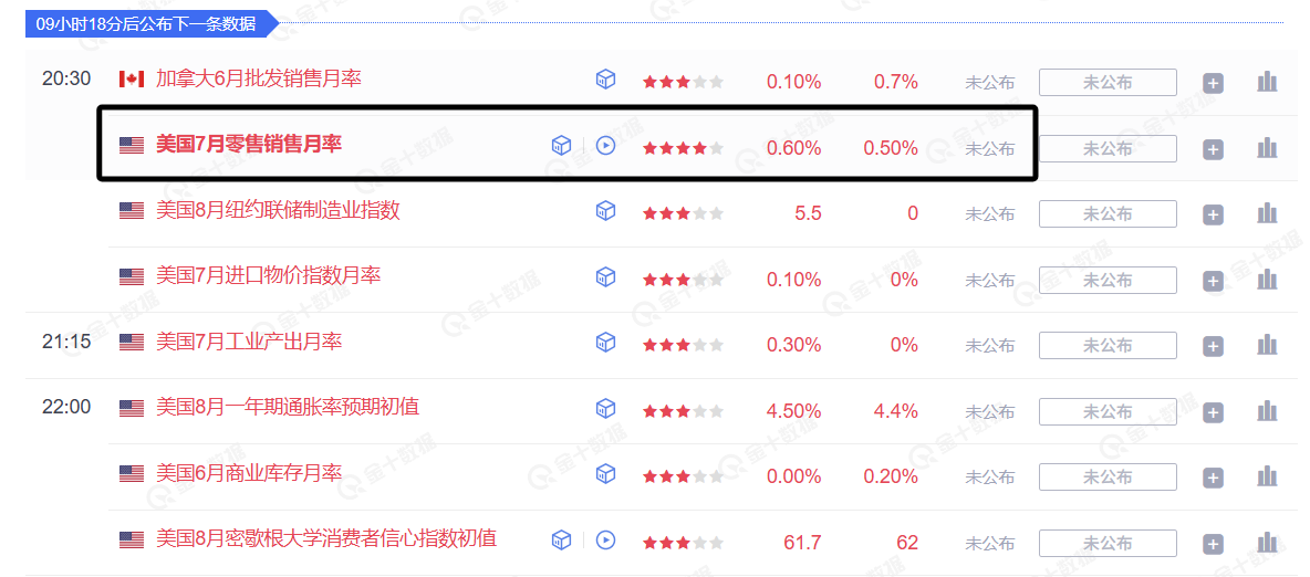 那么,把目光聚焦在今天,日内还有一个“恐怖数据”零售销售等待公布中,该数据从预期来看是消费水平有所回落,一个利多黄金的影响,虽然变化不是很大,但是,用来作为看涨黄金的依据却很好用。