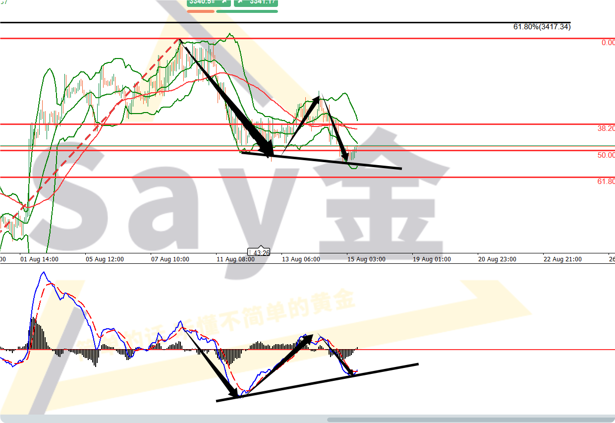 这是国际黄金一小时的走势图,越大的周期越需要更多时间才能走出来,根据图中标注,目前已经价格走势和技术指标MACD已经出现“底背离”信号了,就差爆发了,所以现在剩的,其实还是时间问题!