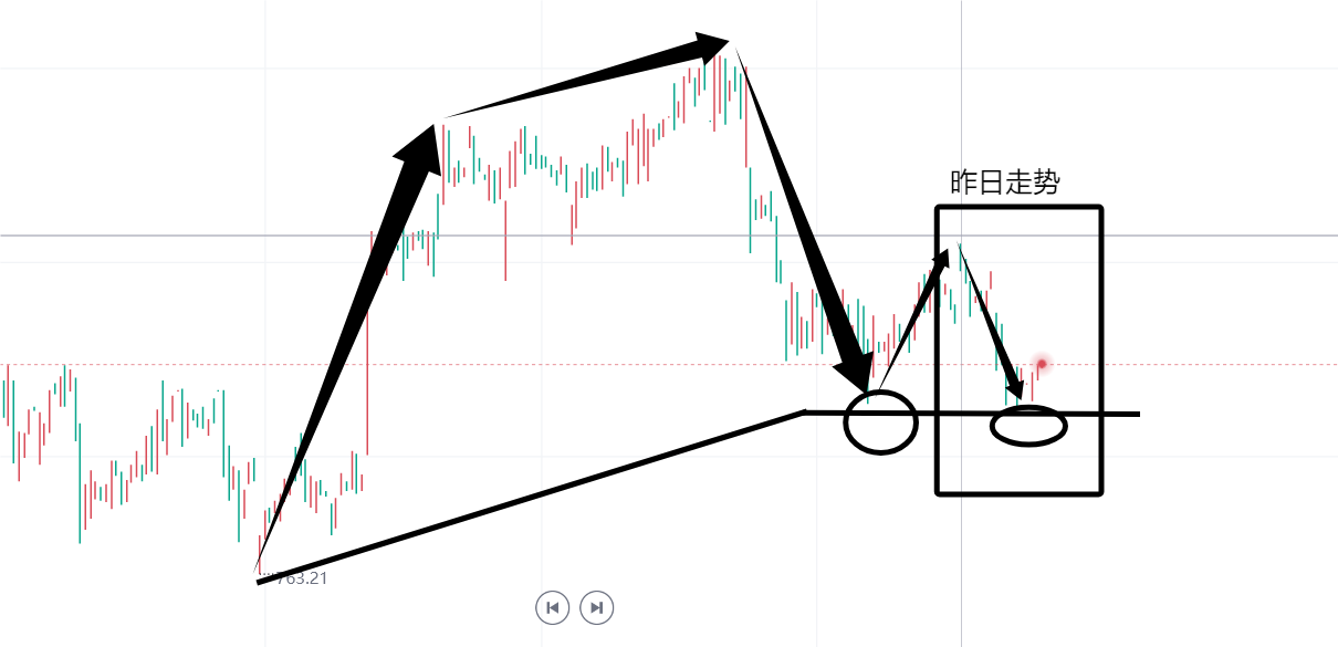 相较于国际黄金,国内黄金的动作才是反映当下黄金市场的投资者情绪的最佳走势。毕竟国内走势频率低,所以核心价格波动倒是会很明显,所以在观察趋势性交易上非常简洁明了。如上图所示,大结构上,黄金就是在针对前一段时间的涨势做调整。昨天的走势是针对止跌反弹的走势进行二次试探。也就是说,金价这次能突破上涨,其实就是新的趋势打开信号。