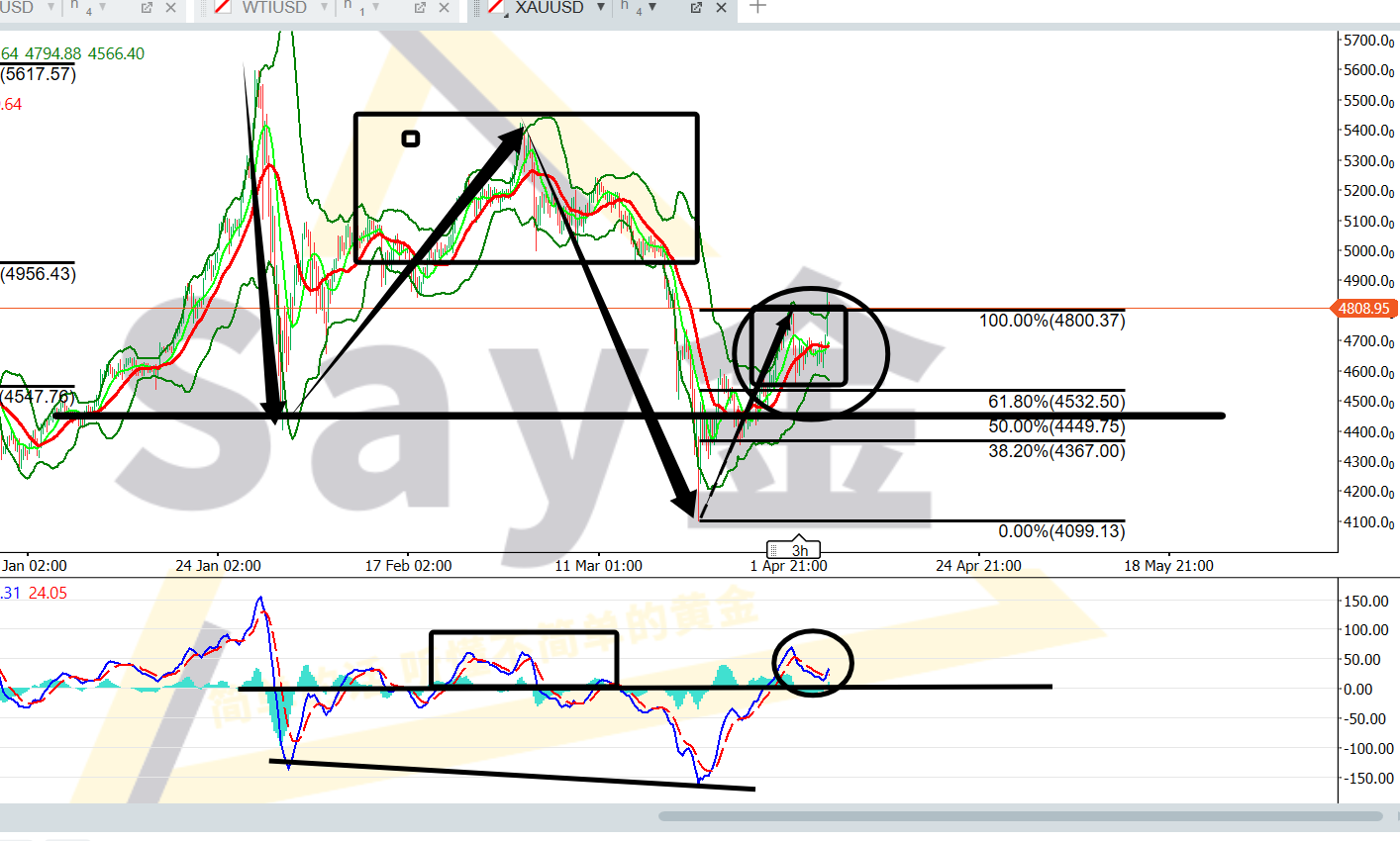 今早起床看到国际金价涨破4800那一刻,我心里其实没啥波澜。只是有点疑惑:美伊真干起来了?看完消息发现他俩不但没打,反而意外“和谈”了。我原本的逻辑是:打起来的话,市场避险情绪会到极端状态,短期内会忽视“原油涨—通胀反弹—加息升温—金价承压”这条链,走一波单独的拉升。要是和谈,避险消退,市场放松,反而对金价不利——按理说是这个逻辑。
