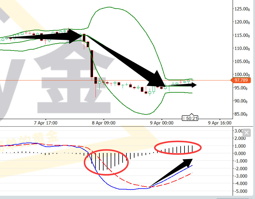 如下图所示,从布林带中可以看得出来,这段下跌加反弹,反倒是在布林带中显示了整体向下“扩张”并在低位“缩口”企稳的意思。对应的MACD则是有这很明显的触底反弹的大幅度拉升,但是,对应的涨跌能量确实有这很明显的“跌强涨弱”的对比,这样看的话,本次反弹在短时间内能回归100的概率并不是很高。