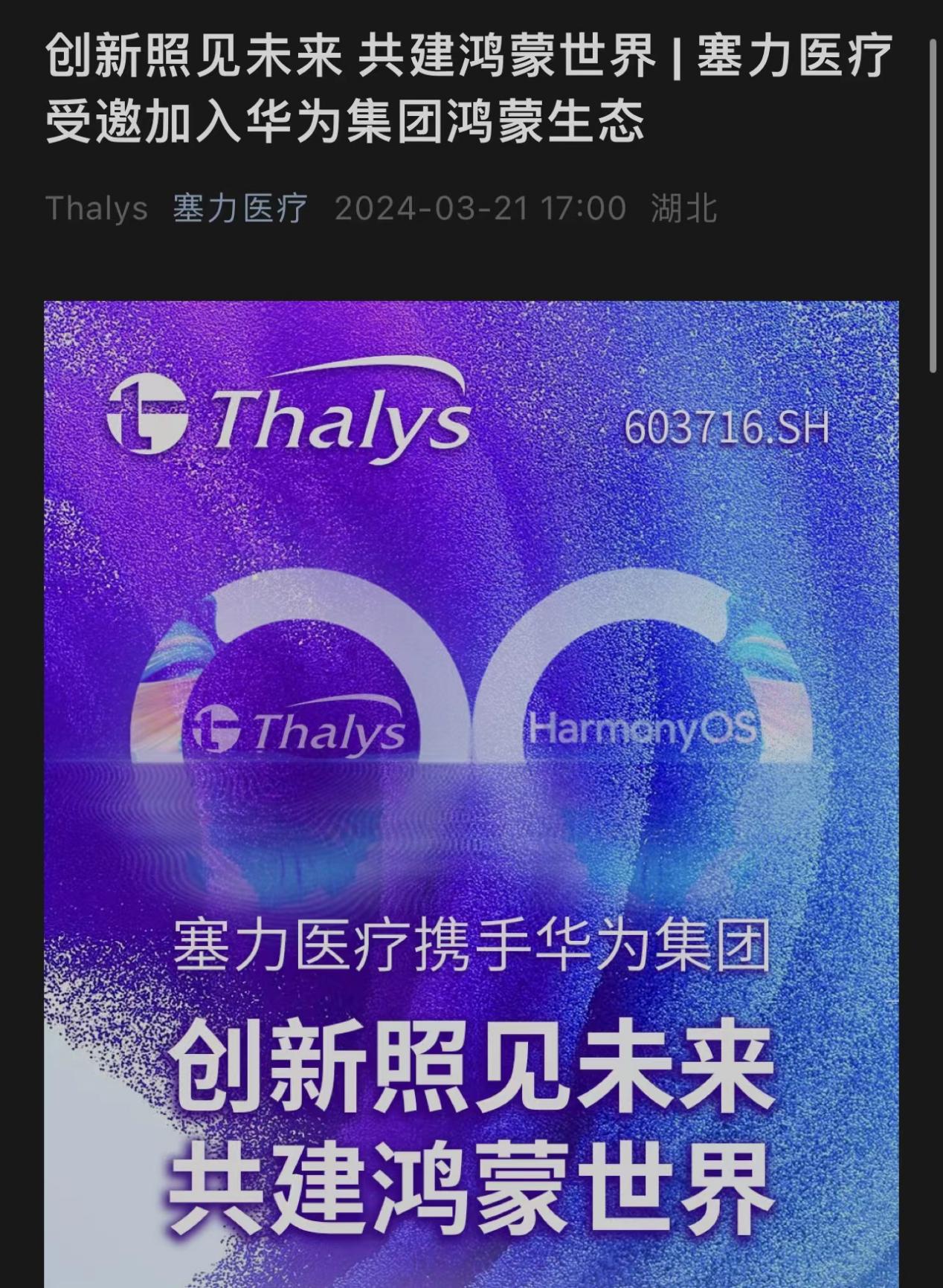 不过,览富财经网注意到,3月21日晚间,塞力医疗官方微信公众号曾发文称公司受邀加入华为集团鸿蒙生态圈。