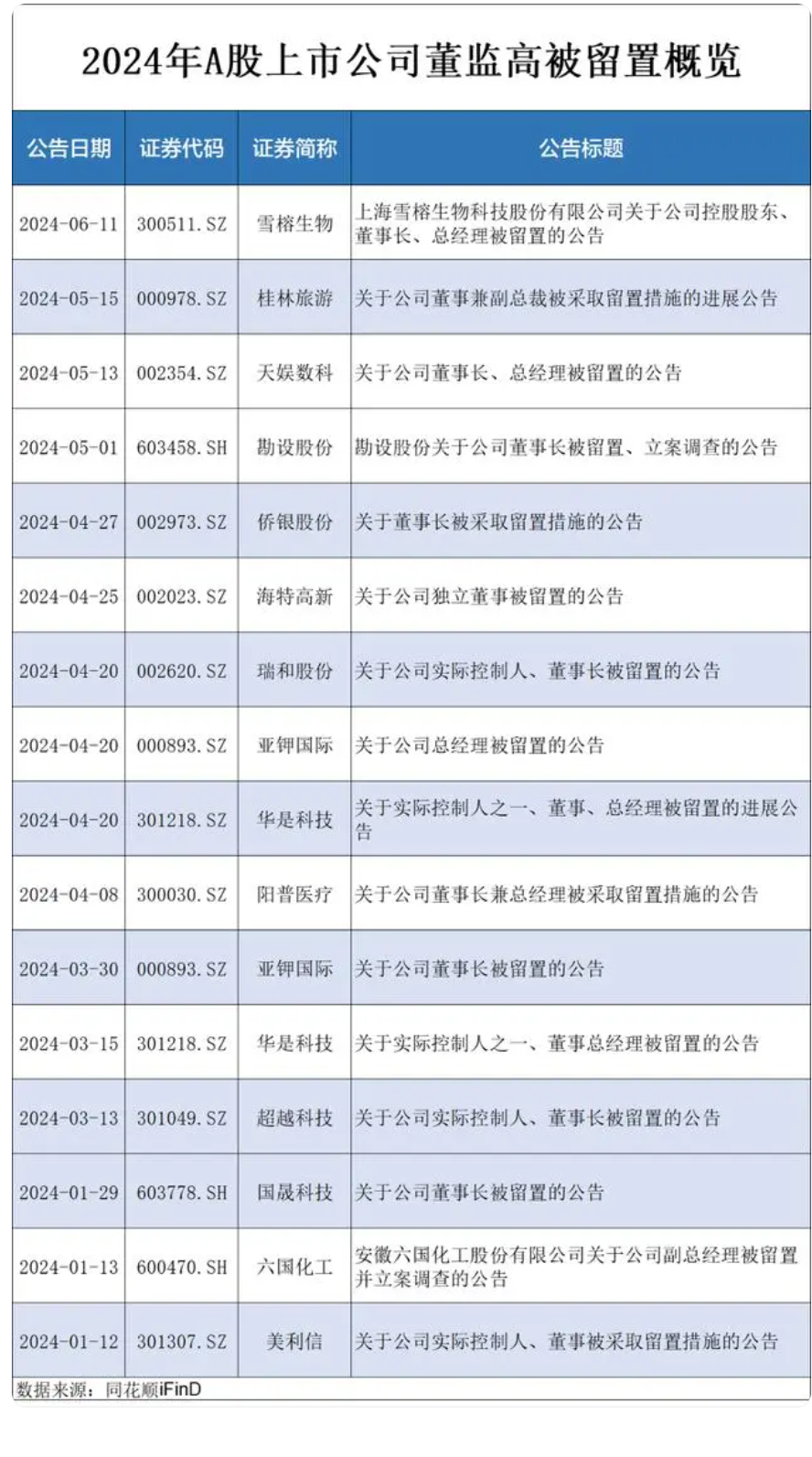 此外,览富财经注意到,截止至2024年6月11日,2024年以来已有16家上市公司发布留置公告,其中不乏桂林旅游、亚钾国际等公司。