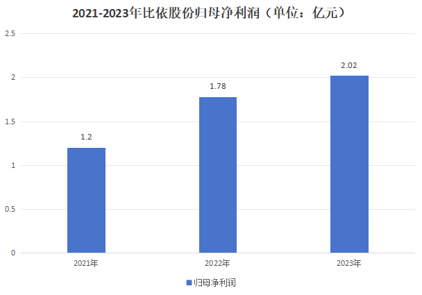 2021年至2023年,比依股份实现归母净利润分别为1.20亿元、1.78亿元、2.02亿元,显示出公司强劲的盈利能力。