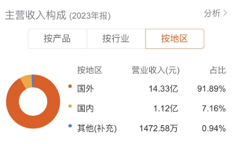 得益于海外订单的持续增长,比依股份2023年国外业务实现营收14.33亿元,同比增长14.13%;国外业务毛利率为21.20%,相比上年同期增加了1.61个百分点。览富财经网注意到,比依股份国外业务的营收占比高达91.89%,远高于国内业务。国外业务的稳定增长,将为公司的业绩提升带来极大帮助。
