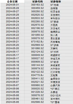 5月20日,深交所向ST步森下发《年报问询函》,并要求其在5月27日回复。5月27日盘后,公司公告称,为确保信息披露内容的真实、准确和完整,回复内容更加详实和充分,经向深圳证券交易所申请,公司将延期至2024年6月4日前完成回复工作。