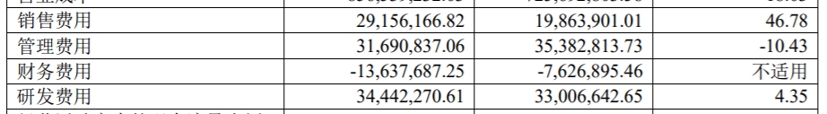 值得注意的是,报告期内,诺邦股份费用为8165.16万元,较上年同期增加102.51万元;但期间费用率为8.12%,较上年同期下降1.24个百分点。其中,销售费用同比增长46.78%,管理费用同比下降10.43%。