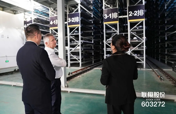 随后,盖格集团代表团一行移步至公司立体仓与生产线,亲眼见证了高效、精准的仓储管理系统,以及公司对于产品生产过程中的精细化管理和产品质量的严格把控。盖格集团代表们对此表示高度赞赏。