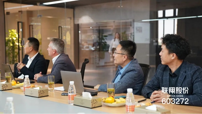 在随后的交流会上,双方企业领导就行业趋势、技术革新、市场拓展等方面进行了广泛而深入的探讨。联翔公司展现出的前瞻视野、稳健步伐以及对合作伙伴的真诚态度,赢得了盖格集团的高度认同,同时也分享了其在窗帘电机领域的最新研发成果,包括静音技术、智能控制以及高效节能等方面的突破。