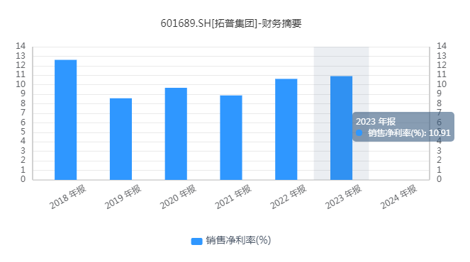 从2019年至2024年前三季度的数据来看,拓普集团的毛利率基本稳定在20%左右。期间,公司净利率则从8.58%提升至11.59%,涨了3个百分点。