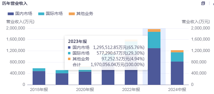 完善的海外布局使得拓普在地域上更好为海外客户提供相应的全球化产品和服务的同时,公司海外营业收入占比由2019年的21%提升至2023年的29%。