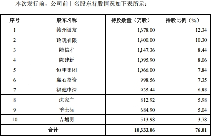 目前,陆信才直接持有公司8.44%的股份,并通过赣州诚友控制公司12.34%的股份;陈建新、沈家广、季士标、吉增明及茆太如等五人合计直接持有公司24.26%的股份,上述六人合计控制公司45.05%的股份。