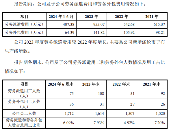 2020年至2024年上半年末,海阳科技员工人数分别为1520人、1507人、1614人和1712人。