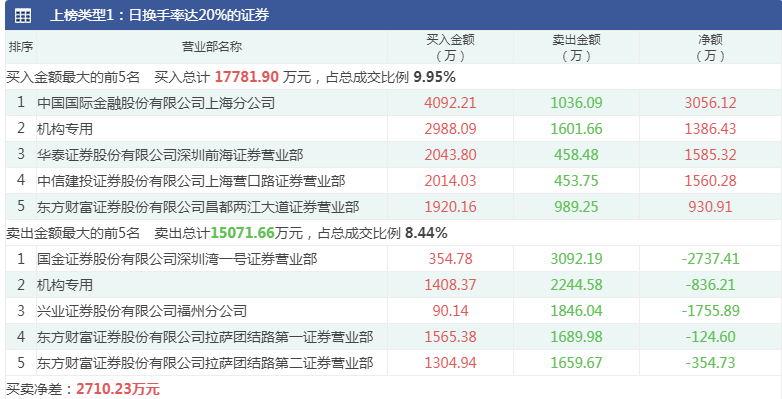 截至3月26日收盘,神开股份报收11.56元,涨幅4.24%,成交量1.56亿股,因日换手率达20%的证券登上龙虎榜。