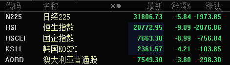今日早间,日经225指数开盘后便快速跳水,早间跌幅一度超过8%,韩国股市同样遭受重挫,韩国Kospi指数跌近5%,MSCI亚太指数跌幅扩大至2.3%。与此同时,美股期指跌超4%,大宗石油、铜等也是全线暴跌。