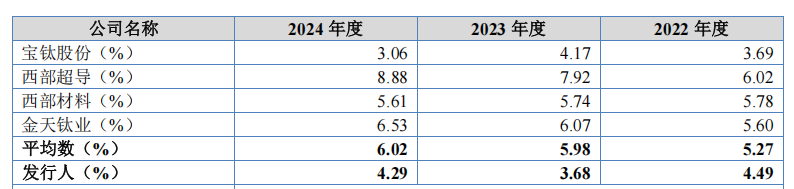 此外,与同行业可比公司相较,天工股份无论是在业务规模还是研发投入上,都要略逊一筹。2022年—2024年,公司研发费用率分别为4.49%、3.68%和4.29%,明显低于同行平均水平。