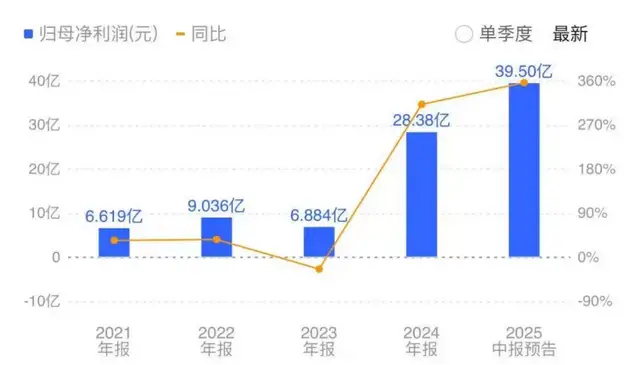 在这样的行业背景下,新易盛的业绩也取得了不俗的增长。近年来,除了2023年因客户需求波动与成本压力导致净利润下降之外,大部分年份,新易盛的业绩表现都是可圈可点。尤其今年上半年,中报预告显示,2025上半年新易盛预计实现净利润370000万元至420000万元,同比大幅增长327.68%至385.47%;预计实现扣非净利润369100万元至419100万元,同比大幅增长326.84%至384.66%。