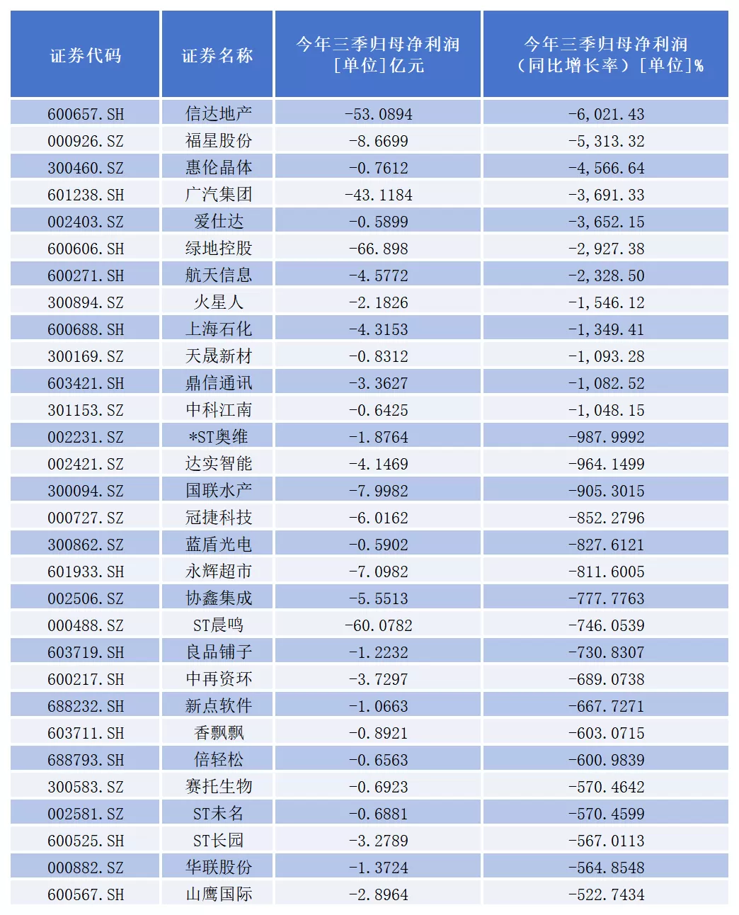 544位A股“三差生”名单曝光:信达地产亏损同比扩大6021%,*ST奥维营收同比暴跌87%