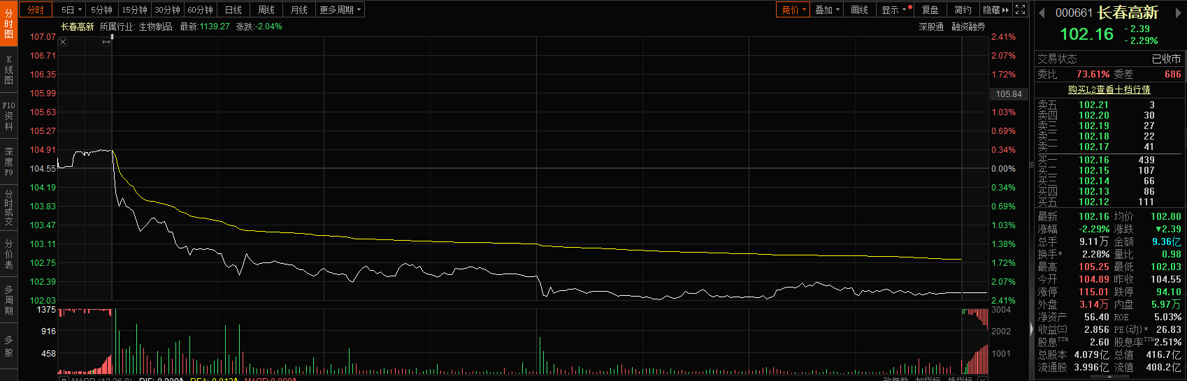据了解,长春高新技术产业(集团)股份有限公司已于1996年12月18日在A股深主板上市(股票代码:000661.SZ),截至2025年11月17日收盘,市值约416.7亿人民币。