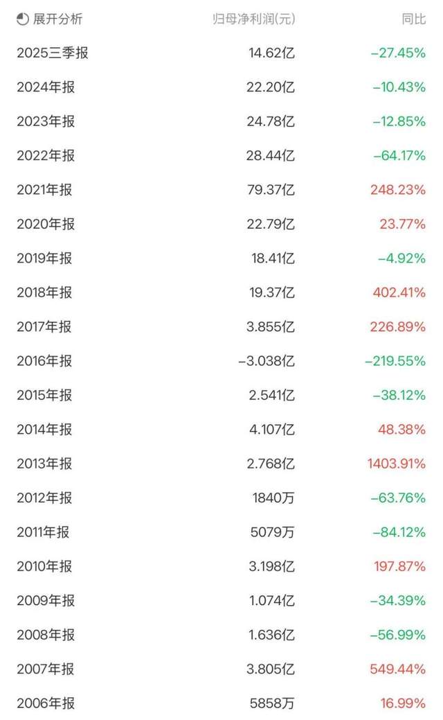 如今,受行业产能过剩影响,华峰化学业绩已连续多年承压。2022年至2025年前三季度,公司分别实现净利润28.44亿元、24.78亿元、22.20亿元、14.62亿元,分别下降64.17%、12.85%、10.43%、27.45%。