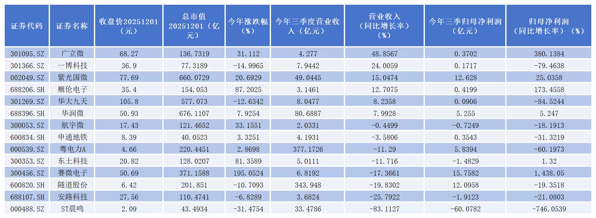 从二级市场表现看,截止12月1日收盘,今年以来,赛微电子、概伦电子、东土科技等3公司股价涨幅均超过80%,位居前三。其中,赛微电子已经成功实现翻倍。从业绩表现看,今年前三季度,广立微、紫光国微、概伦电子、华润微等4家公司营收和利润均实现同比增长。