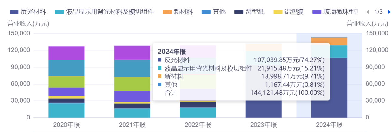公司是国内反光材料领域的领军企业,目前主要在微棱镜膜技术、铝塑膜新材料、高端显示光学膜这3个方面布局。