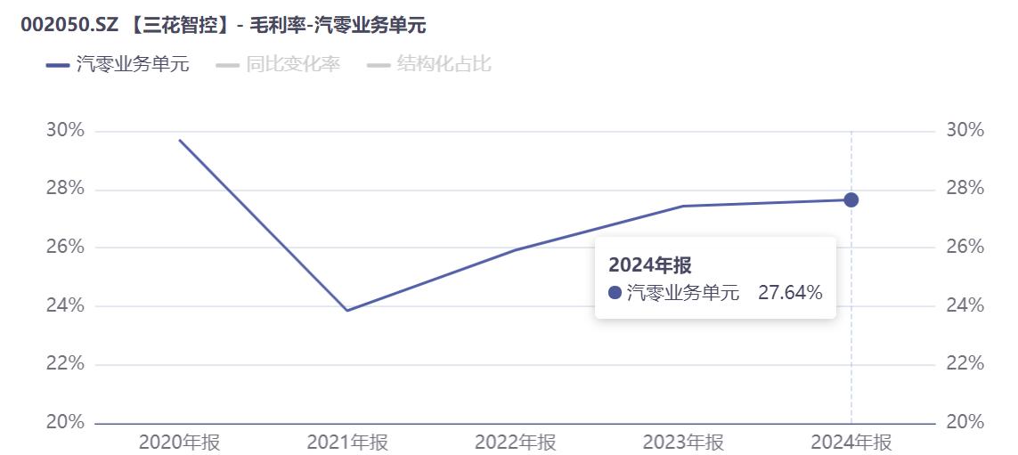 2020-2024年,公司汽零业务复合增长率高达46.5%。毛利率方面,也始终保持在25%-30%的较高水平。
