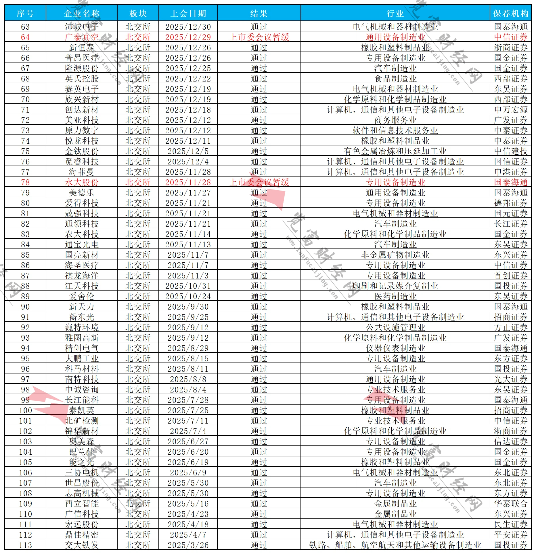 随着2025年A股IPO审核工作正式收官,全年市场交出了一份高质量的“成绩单”。数据显示,全年共有113家企业上会,整体过会率高达97.35%。这一数据不仅刷新了近年来的纪录,更深刻映射出在“提质增效”的监管导向下,拟上市企业的申报质量与审核监管标尺实现了高度协同。