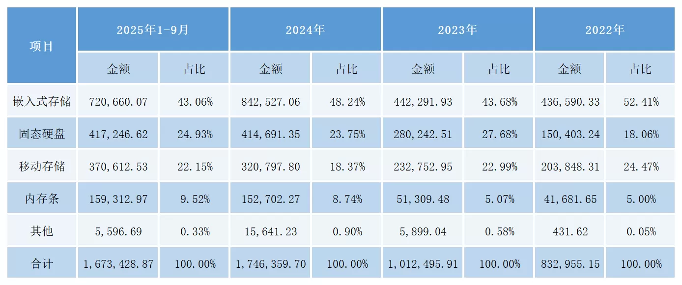 截至2025年9月30日,公司已推出应用于UFS、eMMC、SD卡和车规级USB产品的四个系列多款主控芯片,累计部署量突破1亿颗。其中,搭载自研主控芯片的UFS4.1产品已获得多家Tier1大客户的认可,并且部署规模仍在保持快速增长。