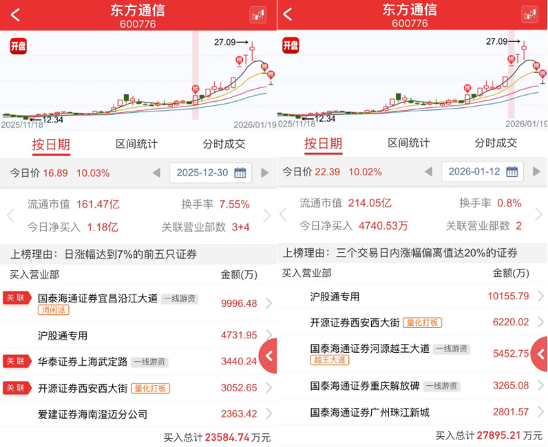 股价暴涨的核心驱动力,源于其业务涉及商业航天概念。据了解,东方通信从事的卫星互联网网络维护等业务,精准踩中了当下市场热点,成功吸引了资金扎堆涌入。在股价连续走强期间,消闲派、越王大道等知名游资,以及量化打板等多路资金先后现身该股龙虎榜,进一步助推其股价上涨势头。