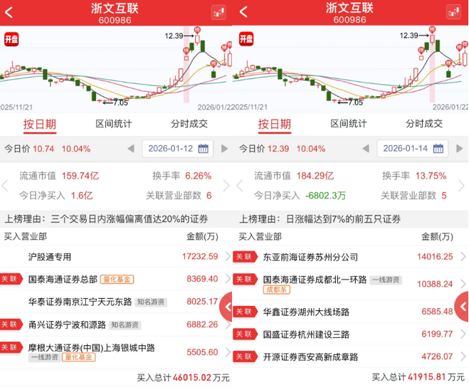 在股价波动上涨期间,包括机构、量化基金,以及成都系、宁波和源路等知名游资均先后买入浙文互联的股票,多路资金的接力炒作,推动其股价持续上涨。