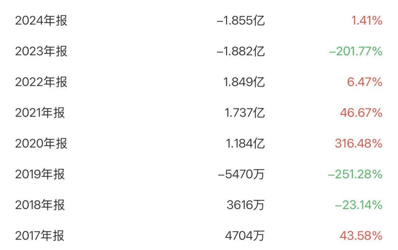 上市之后的第二年,中欣氟材就出现了净利润的下滑现象,2019年则直接亏损超5000万元,之后几年业绩虽有好转,但2023年、2024年再度迎来亏损,金额分别高达1.88亿元、1.86亿元。