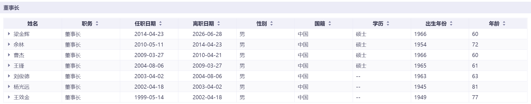 公司财务总监与董事会秘书长期稳定,董秘2009年至2026年仅更换2任,核心团队任期远超行业平均水平,管理层平均任期达8.55年,为五家企业中最高。