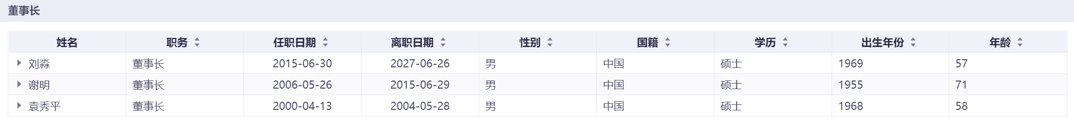 泸州老窖1999年至2026年董事长更迭3任,2015年刘淼上任至今已稳定履职近10年;总经理同期更换3任,2015年林锋上任后与董事长长期搭档。