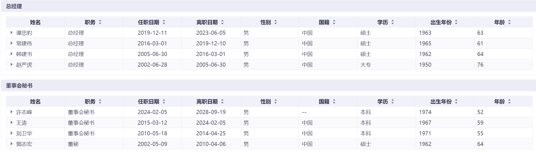 公司董事会秘书2002年至今历经4任,2015年至2024年9年更换王涛、许志峰2任,呈现“主要负责人阶段性更替、经营层同步调整”的国资平台特征。