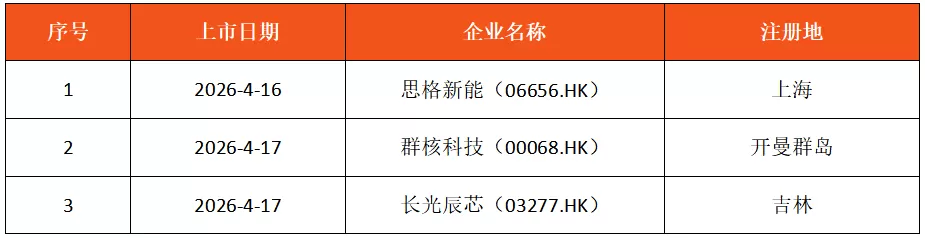 本期3 家企业成功登陆港交所,详情如下: