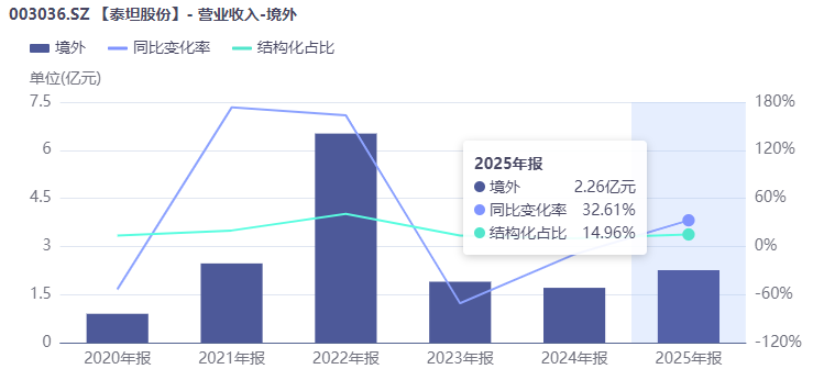 翻看2025年年报,泰坦股份的成绩单并不“好看”。全年实现营业收入15.14亿元,同比下降8.71%;归母净利润4734.83万元,同比下降46.65%;扣非净利润更是大幅下滑71.18%。