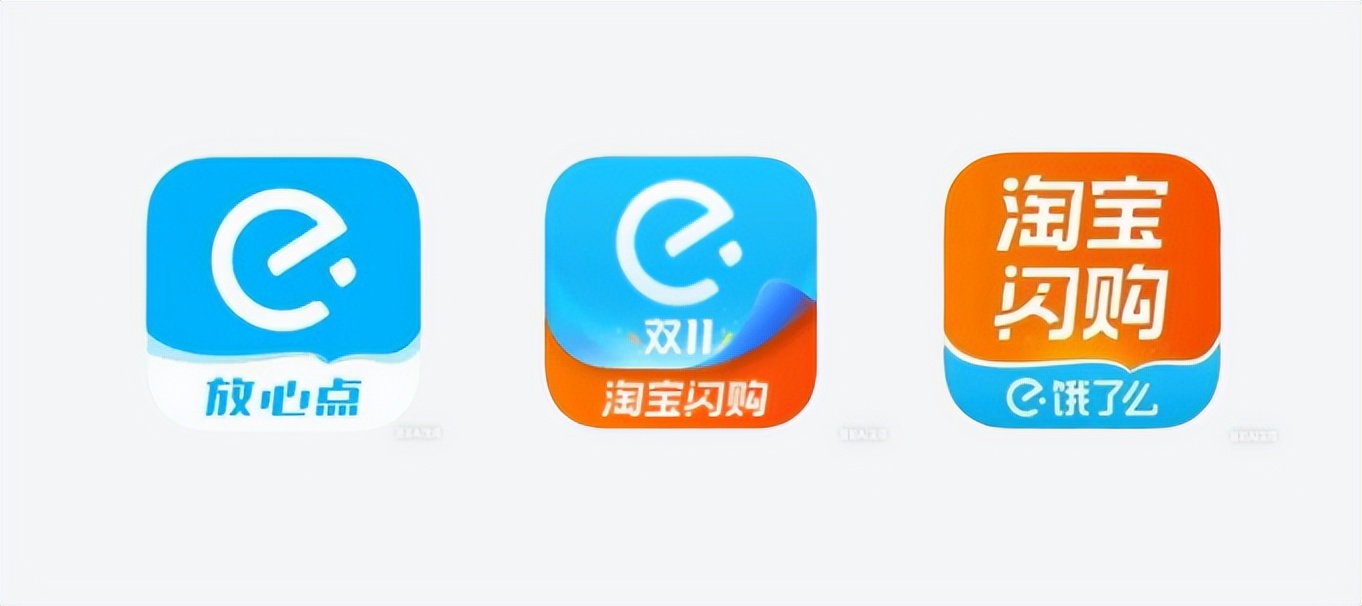 这种调换也体现在品牌最重要的视觉符号——Logo 的变化中。可以看到饿了么品牌主题色蓝色逐渐让位于淘宝的主题色橙色,中间的过渡图标有一个翻页设计,从视觉上已经传达了“掀开饿了么,底色是淘宝闪购”。