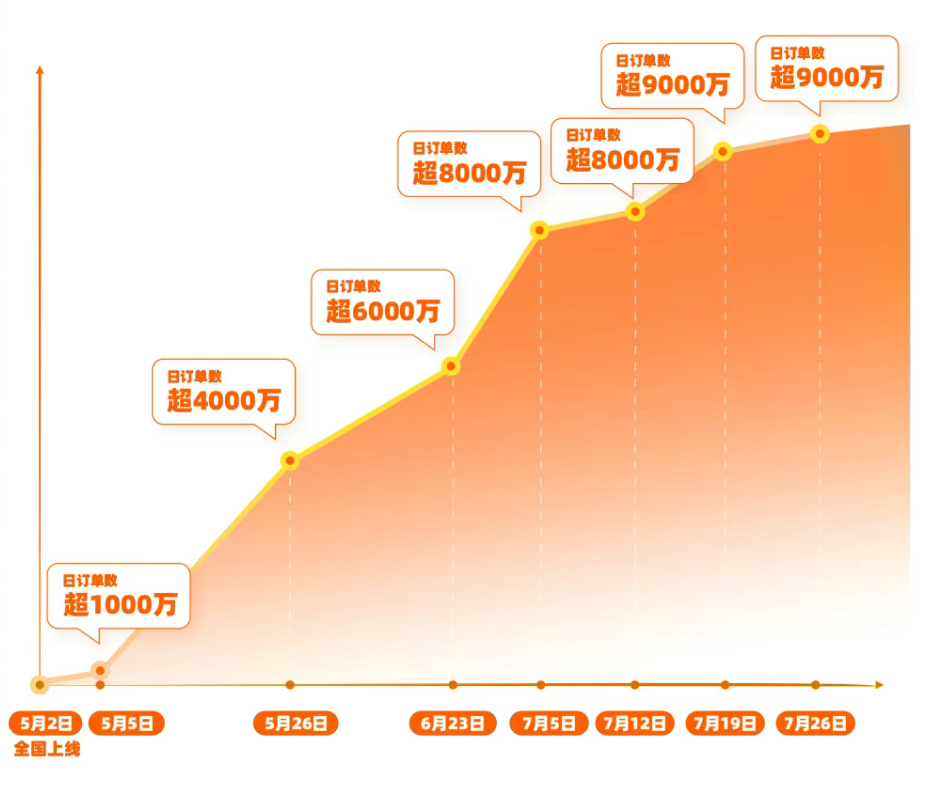 当月淘宝闪购便联合饿了么宣布日订单超过 4000 万,紧接着 6 月阿里巴巴进行组织架构调整,将饿了么、飞猪并入阿里中国电商事业群。这提示了阿里的大消费平台构想正在逐步落实。