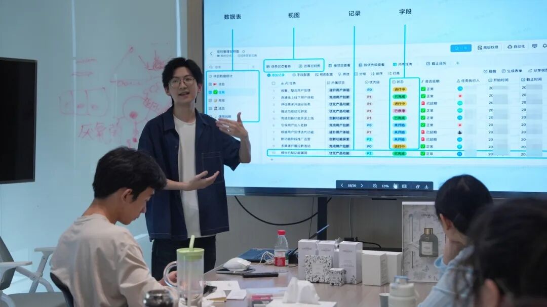 今年,AI 开始从底层技术走向应用层,飞书也在服务电商客户时发现,行业面临“想落地 AI 却无抓手”的普遍困境。3 月在得到新商学分享时,现场 90% 参会者为电商老板,OA 环节超 80% 问题聚焦“电商场景如何用 AI”,现场演示飞书多维表格的 AI 功能时,100 多位老板全程举手机拍摄。