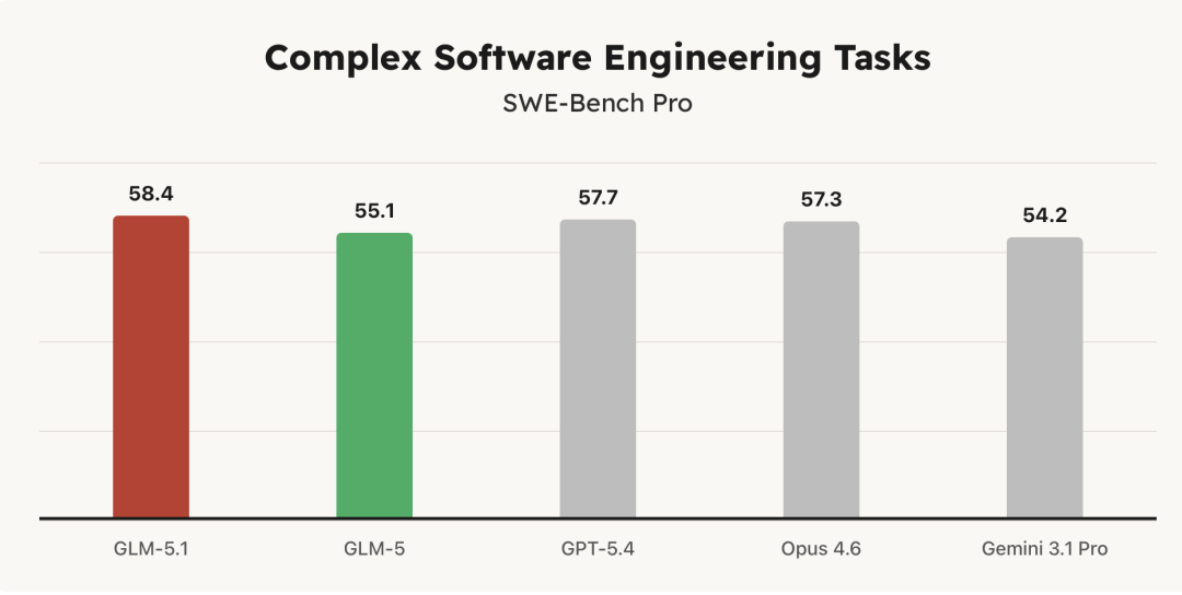 “智能上限”,是智谱认为自己能够掌控的变量。4月8日发布的GLM-5.1在最接近真实软件开发场景的SWE-bench Pro基准上首次超越Claude Opus 4.6。更引人注目的是其“长程任务”能力:GLM-5.1能在单次任务中持续自主工作长达8小时,自主规划、执行、测试,碰壁时切换策略,出错后自行修复,最终交付工程级成果。