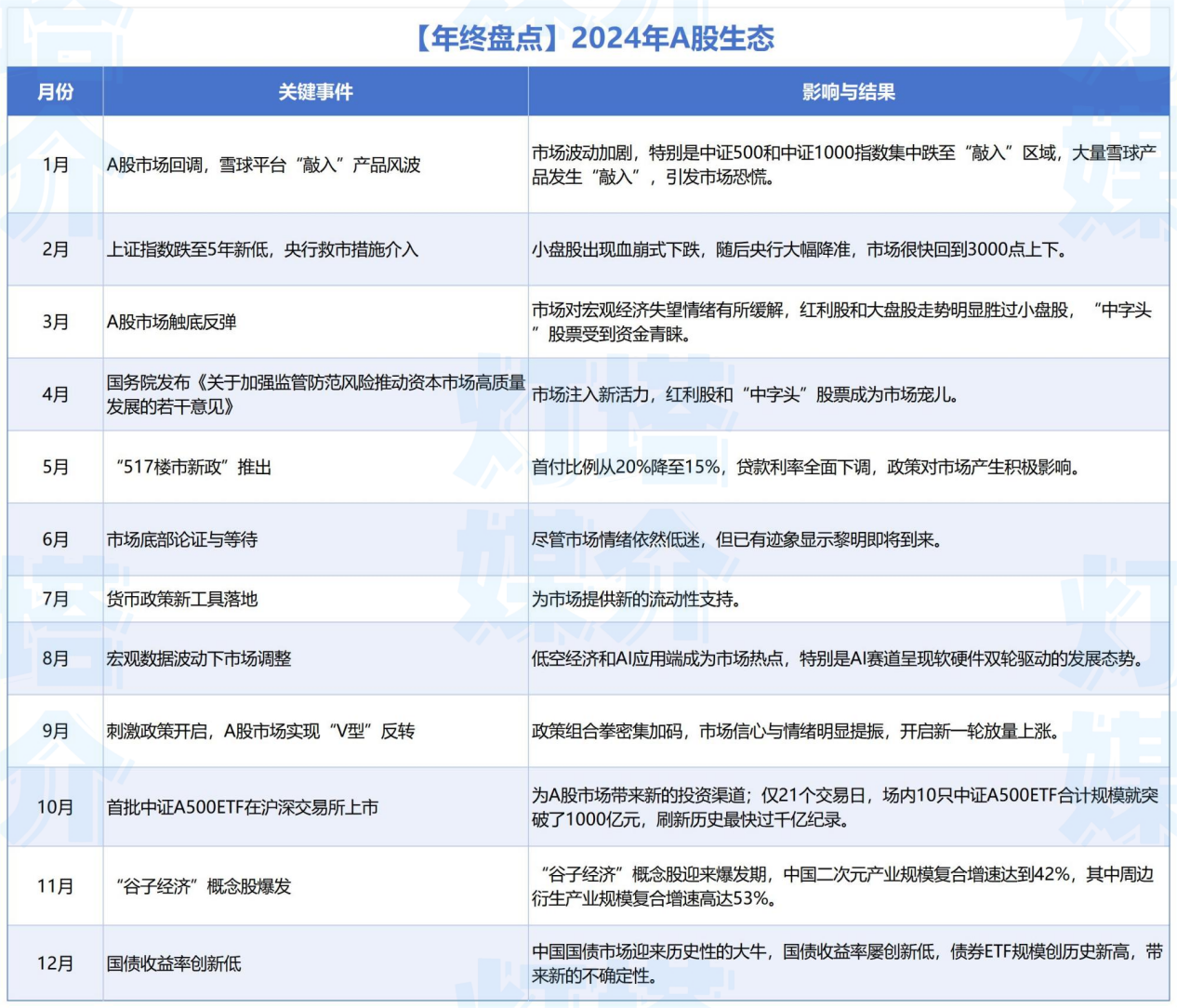 随着2024年的落幕,让我们按月回顾这一年A股市场的关键时刻,共同感受它的脉动。