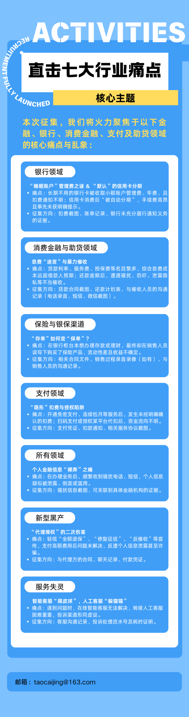为此,Tao财经正式启动2026年度“3·15金融消费者守护计划”,现面向全社会公开征集线索!