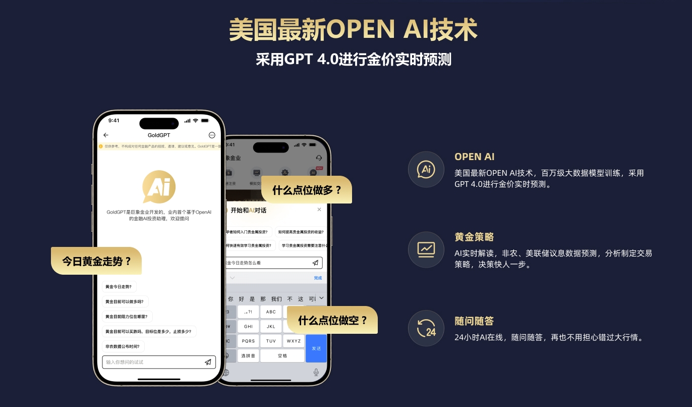 首先,现货黄金交易市场全天24小时开放,覆盖了主要国际市场的交易时段,包括交易量最大的欧洲和美洲市场。其次,黄金市场是全球性的,可以迅速对全球重大新闻事件作出反应。黄金交易不受资金量限制,投资者可以通过保证金交易和杠杆效应,降低投资门槛,实现以小博大。最重要的是,现货黄金的双向交易机制使得投资者在市场下跌时也能获利。然而,这些交易优势也给缺乏金融知识的普通投资者带来了挑战,他们往往容易追涨杀跌,缺乏有效的风险管理,AI助手GoldGPT的应用正为这些投资者提供了新的解决方案。
