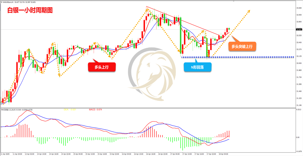 多单:32.700附近尝试多单,止损32.500,目标32.900、33.700附近。(6小时有效)